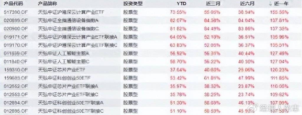 更值得警惕的是,这种亏损并非个例,而是呈现出跨赛道的系统性特征:医疗保健设备与服务ETF亏损34.52%;食品饮料ETF亏损25.29%;光伏产业系列产品均亏损超23%;细分化工主题亏损约24%;农业主题亏损约16%。业内人士指出,这种“多点亏损”现象反映出天弘基金在产品布局上存在明显的时机错判,似乎总是“在市场最热时进场,在估值最高处站岗”。