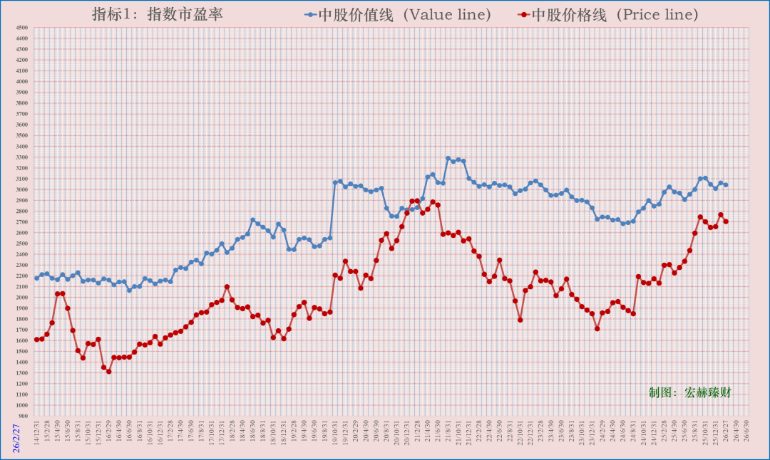 (蓝色为市场价值线,红色为市场价格线年逐月更替,直到未来全部用A500指数来监测。