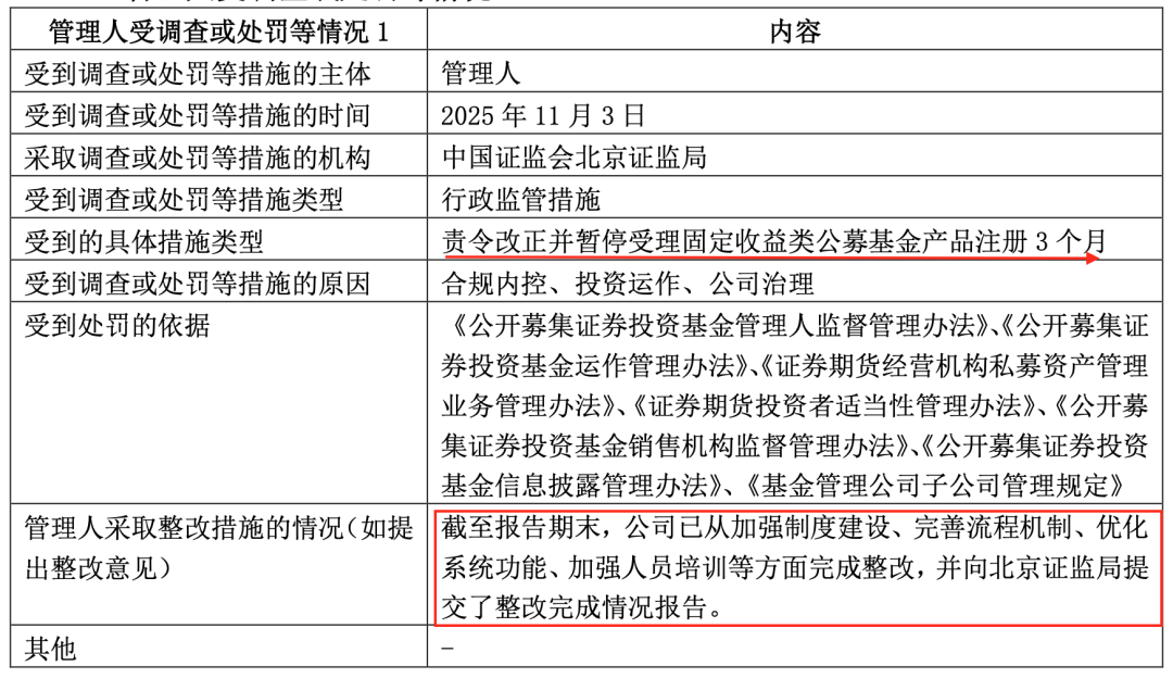 2025年11月28日,华安基金被上海证监局责令改正,并暂停受理固定收益类公募基金产品注册申请3个月。