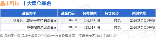 根据2026基金Q1季报公募基金重仓股数据,重仓该股的公募基金共2家,其中持有数量最多的公募基金为华夏基金的华夏远见成长一年持有混合A。华夏远见成长一年持有混合A目前规模为4.86亿元,最新净值1.6553(4月24日),较上一交易日下跌1.42%,近一年上涨84.35%。该公募基金现任基金经理为钟帅。钟帅在任的基金产品包括:华夏行业景气混合A,管理时间为2020年7月28日至今,期间收益率为252.22%;华夏招鑫鸿瑞混合A,管理时间为2024年1月16日至今,期间收益率为164.22%;华夏卓越成长混合A,管理时间为2025年8月12日至今,期间收益率为42.38%。