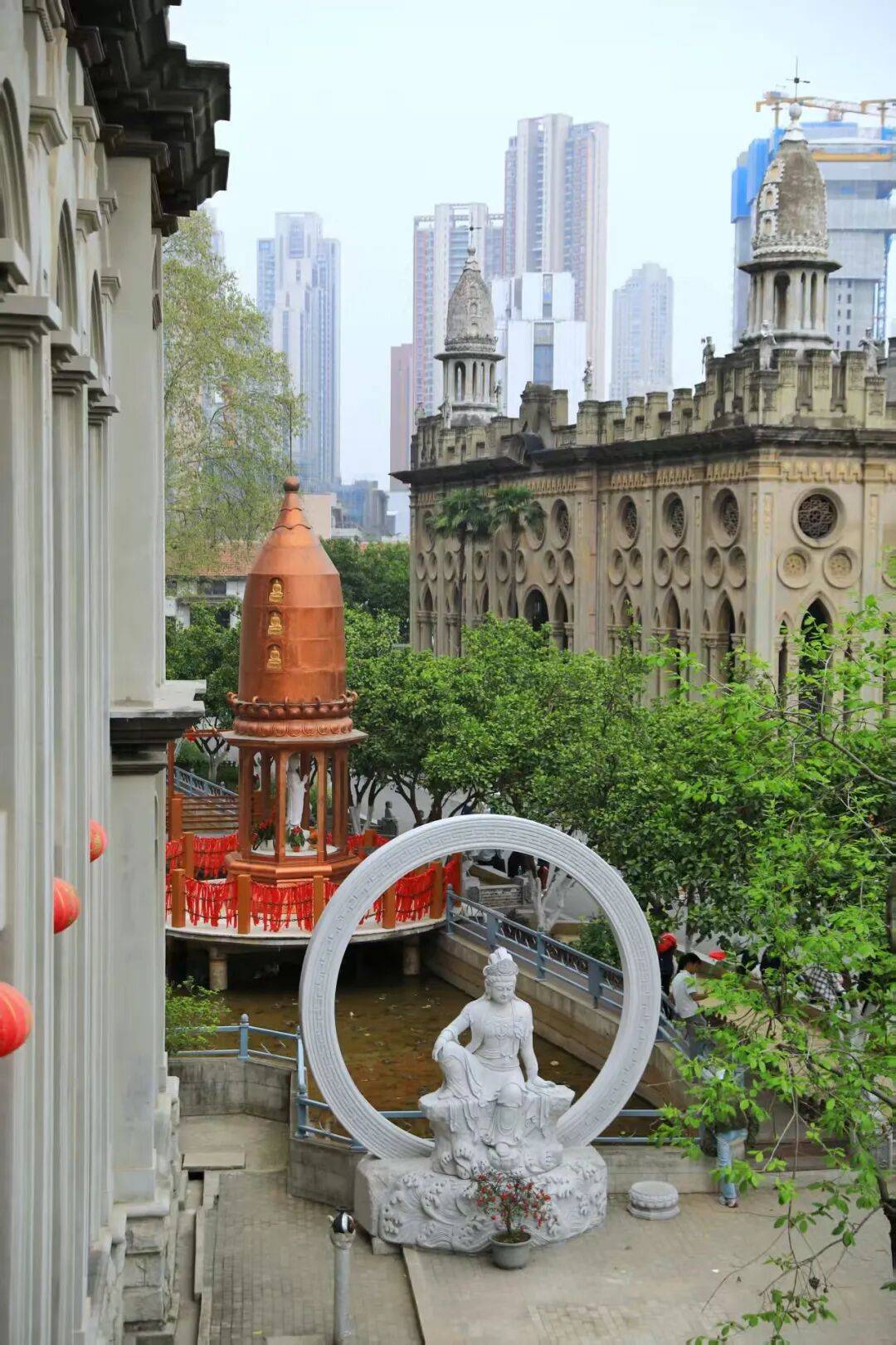 ■接团后前往全国重点文物保护单位:【古德寺】:古德寺始建于1877年,寺庙的核心建筑是圆通宝殿,运用了古罗马建筑的结构,内外墙之间的回形步廊和许多方柱,立面墙上的圆窗和长窗,却是基督教堂的建筑样式。在全国寺庙中独树一帜。其九座佛塔的塔刹,既像风向标又像十字架,在中国塔文化中也是独树一帜。2012年,古德寺被列入武汉市江岸十大景观,是一座极具特色的禅宗建筑。