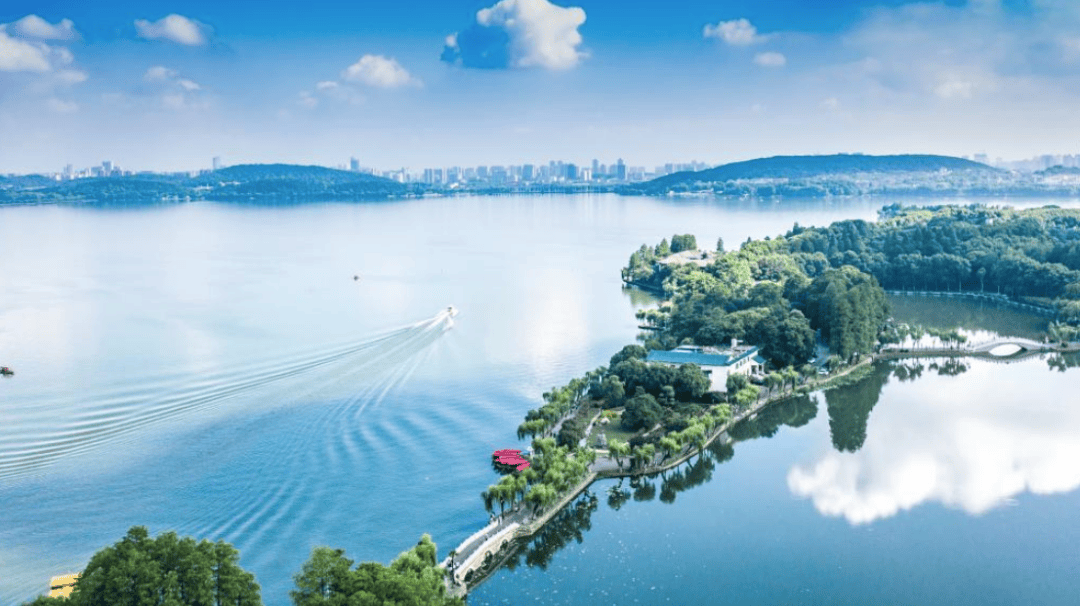 杭州有西湖,武汉有东湖,东湖又称裹脚湖,是长江右岸湖泊。全湖面积约33平方公里,是西湖的五倍。东湖景区88平方公里,由听涛、磨山、落雁、吹笛、白马和珞洪6个片区组成。