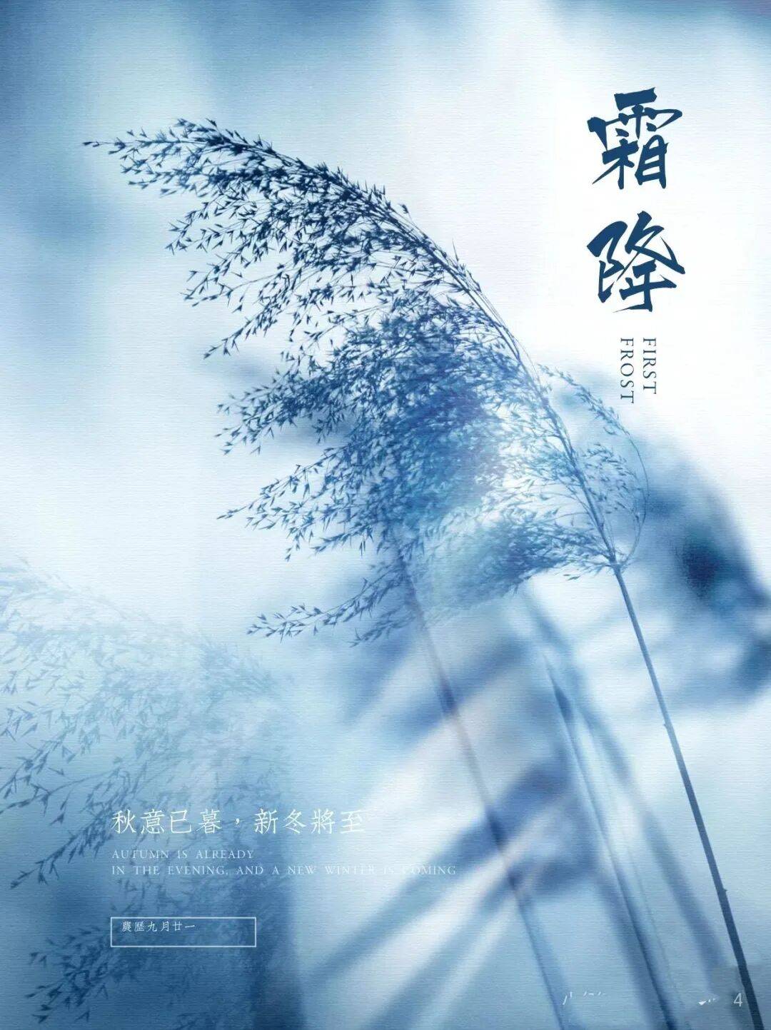 霜降是二十四节气中的第十八个节气,秋季的最后一个节气。霜降时节,万物毕成,毕入于戌,阳下入地,阴气始凝,天气渐寒始于霜降。由于“霜”是天冷、昼夜温差变化大的表现,故以“霜降”命名这个表示“气温骤降、昼夜温差大”的节气。霜降节气特点是早晚天气较冷、中午则比较热,昼夜温差大,秋燥明显。霜降节气主要有赏菊、吃柿子、登高远眺、进补等风俗。