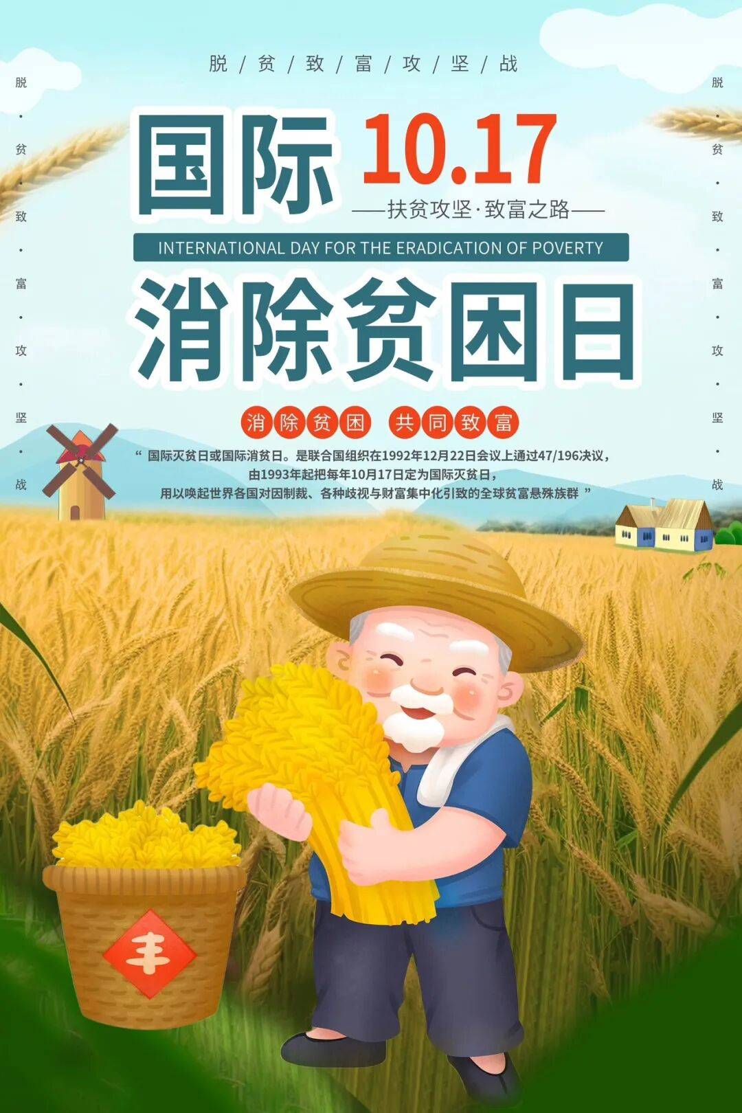 国际消除贫困日亦称国际灭贫日或国际消贫日。是联合国组织在1992年12月22日会议上通过47/196决议,由1993年起把每年10月17日定为国际灭贫日,用以唤起世界各国对因制裁、各种歧视与财富集中化引致的全球贫富悬殊族群、国家与社会阶层的注意、检讨与援助。